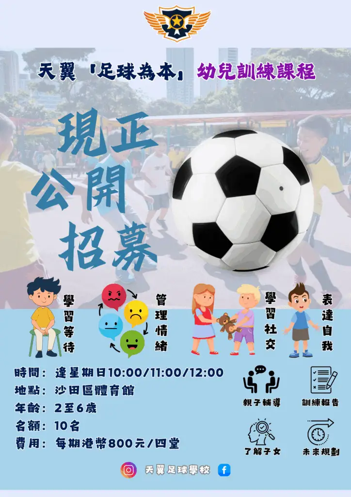在天翼足球學校,我們堅信學生的成長,離不開全面的實踐與國際視野。除了提供專業的足球訓練,我們亦特別設計一系列精英足球訓練計劃,助學員在比賽、個人發展及海外交流三大領域全面升級,讓孩子在香港及世界舞台上,綻放屬於自己的光芒。
